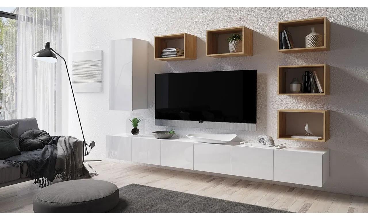 Takto vyzerá moderná a elegantná obývacia izba, v ktorej obývacia stena Bralani XXXVII hrá prvé husle. Jednoduchosť, s akou sa spája kombinácia televíznej skrinky a závesných políc, dodáva interiéru eleganciu. Zaujímavé usporiadanie skriniek a módnych farieb individuálneho nábytku naopak prelomí nudu a predstavuje charakteristický obr.Vďaka veľkému počtu otvorených políc a tých, ktorých interiér je zakrytý plnými čelami, stenová jednotka úspešne kombinuje dekoratívnu funkciu s praktickým uskladnením. Ak chcete zdôrazniť vzhľad obývacej izby, môžete využiť možnosť zavesenia spodných skriniek, vďaka ktorým bude celá miestnosť ešte priestrannejšia.Rozmery prvkov súpravy:TV skrinka Bralani 150 BR04: – x 2šírka: 150 cm, výška: 32 cm, hĺbka: 43 cm,Uzavreté police Bralani BR11:šírka: 45 cm, výška: 117 cm, hĺbka: 32 cm,Závesná polica 50 Bralani BR14: – x 5šírka: 50 cm, výška: 31 cm, hĺbka: 30 cmprevedenie:korpus: 16 mm laminovaná drevotrieska,fronty: 15 mm laminovaná drevotrieska,Hrana z PVC na prednej stranebez úchytiek,Televízna jednotka a polica BR14 sú univerzálnym prvkom – stojace (5cm strieborné nohy) alebo závesné,platne na pripevnenie skriniek k stene v súprave, žiadne montážne kolíky (zákazník si musí kúpiť vlastné)Záruka: 24 mesiacov