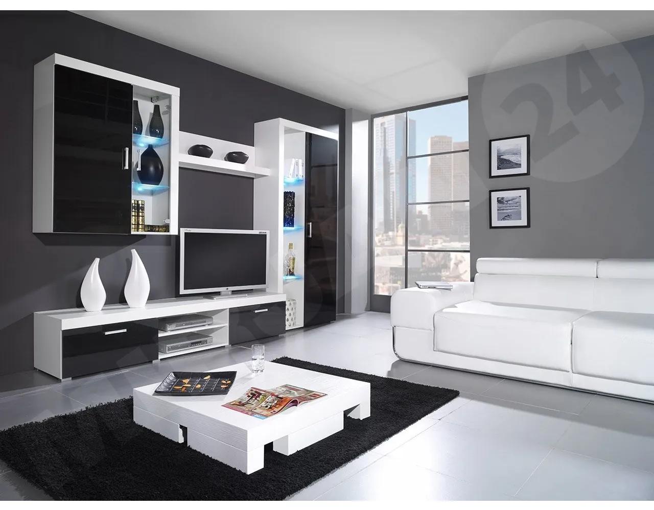 Domů > Obchod > Obývacia stena Mamba III, Osvetlenie: osvetlenie LED RGB – farebné, Farby: biely / čierny lesk
