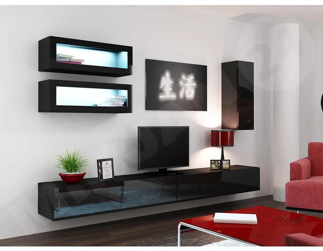 Domů > Obchod > Obývacia stena Zigo XI, Osvetlenie: bez osvetlenia, Farby: čierny / čierny lesk