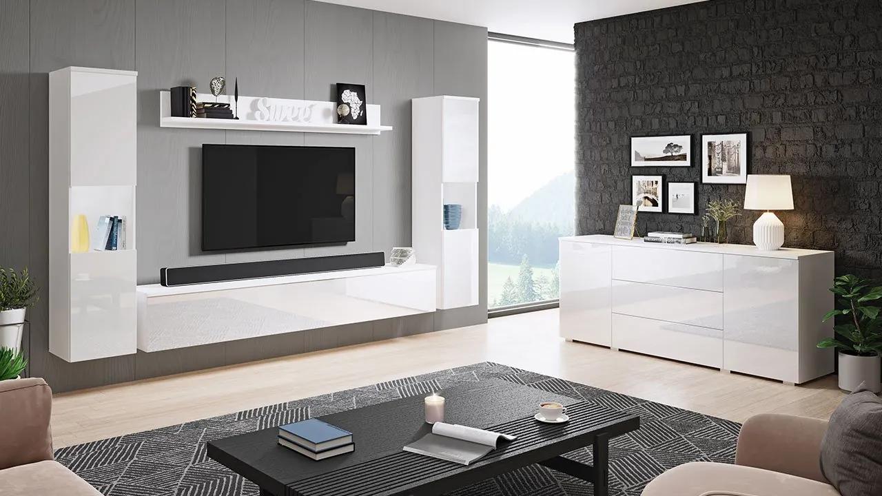 Domů > Obchod > Obývačkový nábytok Bamisio II, Farby: biela / biely lesk, Osvetlenie: bez osvetlenia