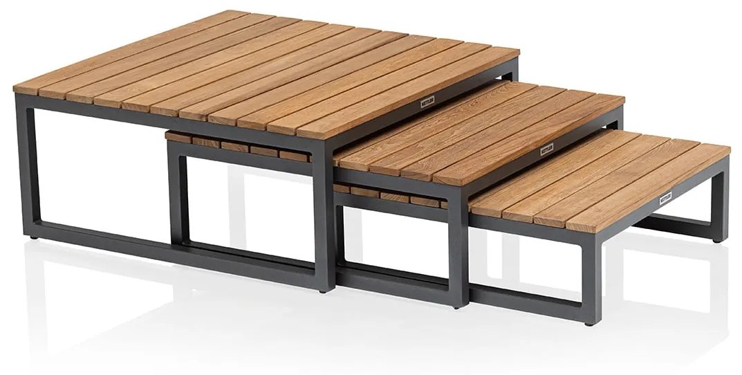 Štýlová a pohodlná séria lounge nábytku OCEAN SKID PLATFORM vám umožní zariadiť si vonkajší priestor podľa vašich predstáv. Set troch konferečných stolíkov sa dá využiť aj samostate alebo si ich môžete vyskladať s ďalšími modulmi podľa vašich predstáv.