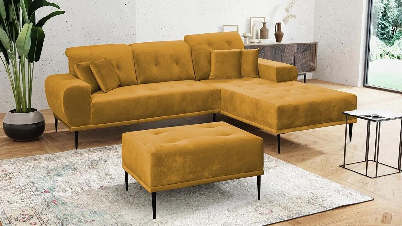 Hľadáte modernú, pohodlnú súpravu s taburetkou? Odpočinková súprava Huguk je niečo pre vás! Moderný charakter sedačky ovplyvňuje jej jednoduchý tvar a kovové nohy, ktoré jej dodávajú ľahkosť. Pohodlie sa premieta do použitých komponentov: vlnité pružiny a elastická pena. Rohové opierky hlavy sú navyše polohovateľné, čo umožní ich prispôsobenie vašim aktuálnym potrebám. Zaujímavým prvkom sú aj vankúše. Súprava obsahuje 4 malé vankúšiky so zámkom. Štýl sedačky a taburetky zvýrazňuje aj použitá látka, ktorá je príjemná na dotyk. Perfektne ladí s prešívaním na sedáku a operadle.Rozmery sedačky:dĺžka: 256 cm,šírka: 194 cm,výška: 85 – 94 cmRozmery taburetky:dĺžka: 83 cm,šírka: 63 cm,výška: 43 cmPrevedenie:rám: drevotrieska + drevený rám,sedadlo: vysokoelastická pena HR 3530 + vlnité pružiny,operadlo: T2315 pena + T25 pena,nerozkladacia sedačkabez úložného priestoru,nastaviteľné opierky hlavy,kovové nohy,čalúnené operadlo pevne fixované,malé vankúšiky (4 ks) v cene – na zips,voľne stojaca sedačka (vzadu čalúnená látkou)Záruka: 24 mesiacov