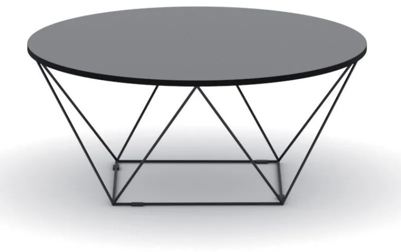 · moderný konferenčný stôl s netradičnou kovovou konštrukciou · vhodný do moderných interiérov · stolová doska je vyrobená z laminovanej drevotriesky hrúbky 18 mm · pevná konštrukcia z oceľových drôtov priemerom 8 mm s povrchovou úpravou práškovým lakom v odtieni čiernej · výška stola 400 mm · dodáva sa v demontovanom stave