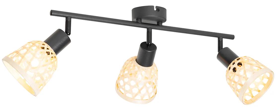 Technické údaje: Ďalšie funkcie:Stmievateľné, stmievač nie je súčasťou balenia,Nie, bez kábla a zástrčky Toto krásne bodové svetlo Rayan rozžiari váš interiér! Vďaka kombinácii čiernej ocele a bambusových bodových svetiel sa perfektne hodí do vášho orientálneho interiéru. Mriežka umožňuje žiarovke vyniknúť a vytvára pekný svetelný efekt na stene. Bodové svetlo má 3 tienidlá, ktoré sa dajú nastaviť samostatne, takže sa môžete rozhodnúť, kam chcete, aby svetlo svietilo. Okrem toho má Rayan výšku 21 cm, dĺžku 67 cm a šírku 10 cm. Bodové svetlo môžete doplniť 3 LED žiarovkami, ktoré sa hodia do malého objímky E14 s maximálnym výkonom 25 wattov, ktoré si môžete objednať samostatne.