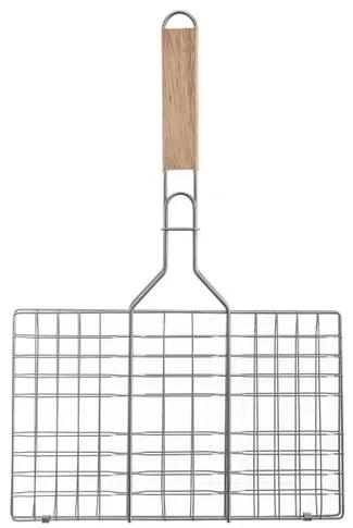 V praktickej mriežke je možné pripraviť nielen pstruha, filet z lososa, kaprie podkovy, ale aj poriadny kus šťavnatej krkovičky, zeleninu, cuketu aj kukuricu. Hranatá mriežka je vyrobená z pochrómovaného kovu, uľahčí otáčanie grilovaných pochúťok. Veľká grilovacia plocha umožní aj opekanie až 6 hamburgerov naraz.Mriežku stačí roztvoriť, vložiť mäso a uzavrieť. Na to slúži posuvné očko na rukoväti, ktoré zaistí pevné priklopenie oboch častí. Dlhá rukoväť, doplnená držadlom z gumovníkového dreva, zabráni popáleniu rúk od žiaru.Grilovacia plocha má rozmer 36 x 22,5 x 2 cm, celková dĺžka s rukoväťou je 59 cm. Po použití ju umyte bežným spôsobom, nechajte odmočiť a umývajte v teplej vode so saponátom. Nie je vhodné do umývačky. Možno ju zavesiť za očko na konci rukovät.