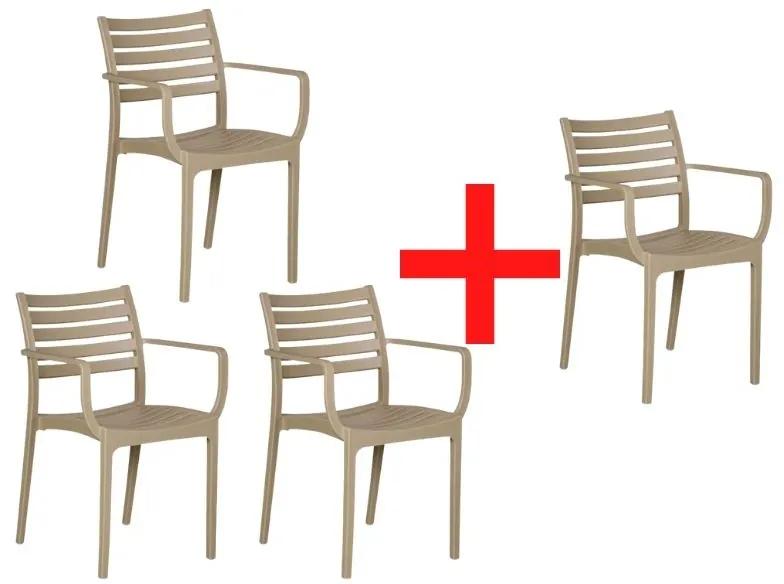 · moderná plastová stolička s jednoduchým dizajnom · mnohostranne použiteľná pre vonkajšie i vnútorné priestory · ideálne napríklad pre použitie v kaviarňach, bistrách alebo ako stoličky pre vonkajšie reštauračné záhradky · zakomponované opierky rúk · nosnosť 140 kg · materiál: polypropylén