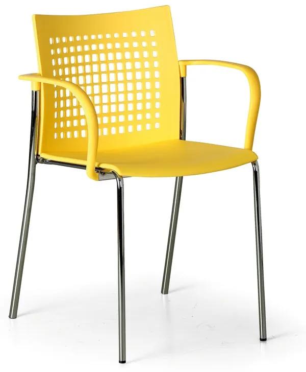· ľahká, ale pevná stohovateľná jedálenská stolička na podnoži z oceľových rúrok · povrchová úprava podnože chrómovaním · nohy sú vybavené plastovými koncovkami · sedadlo a operadlo sú vyrobené z tvrdeného plastu, operadlo je perforované pre väčšiu priedušnosť · nosnosť 130 kg