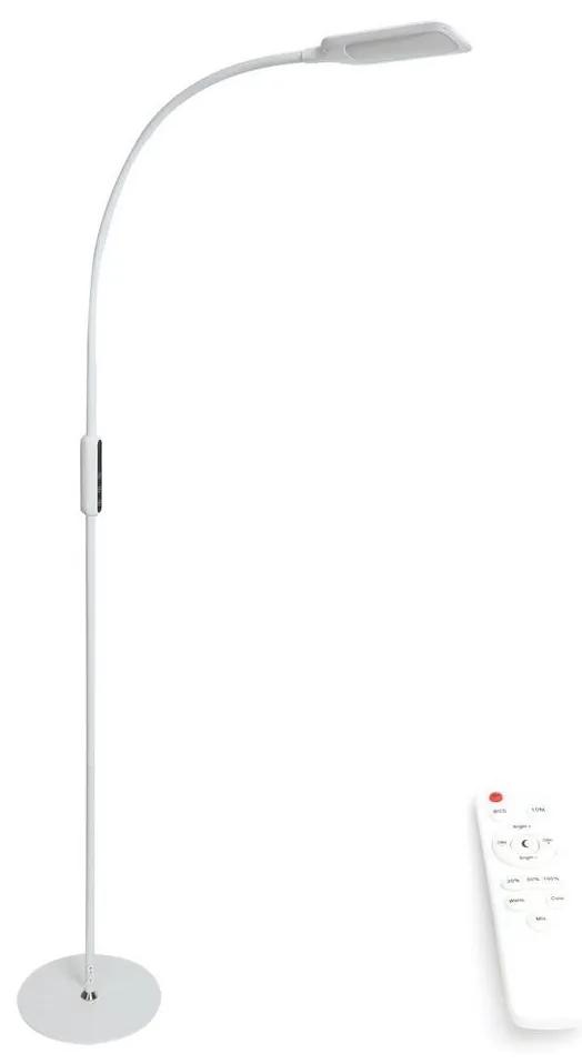 Praktická stmievateľná LED stojacia lampa.Možnosť zmeny teploty svetla: 3000 K až 6500 K.Farebná teplota aj jas je možné regulovať tlačidlami na ovládacom panely lampy alebo diaľkovým ovládaním.Lampa má flexibilné rameno, pomocou ktorého môžete svetlo pohodlne nasmerovať na konkrétne miesto.Svietidlo ponúka aj funkciu vypnutia časovačom.Súčasťou balenia: diaľkové ovládanie vrátane batérií, trafo na napájanie lampy.