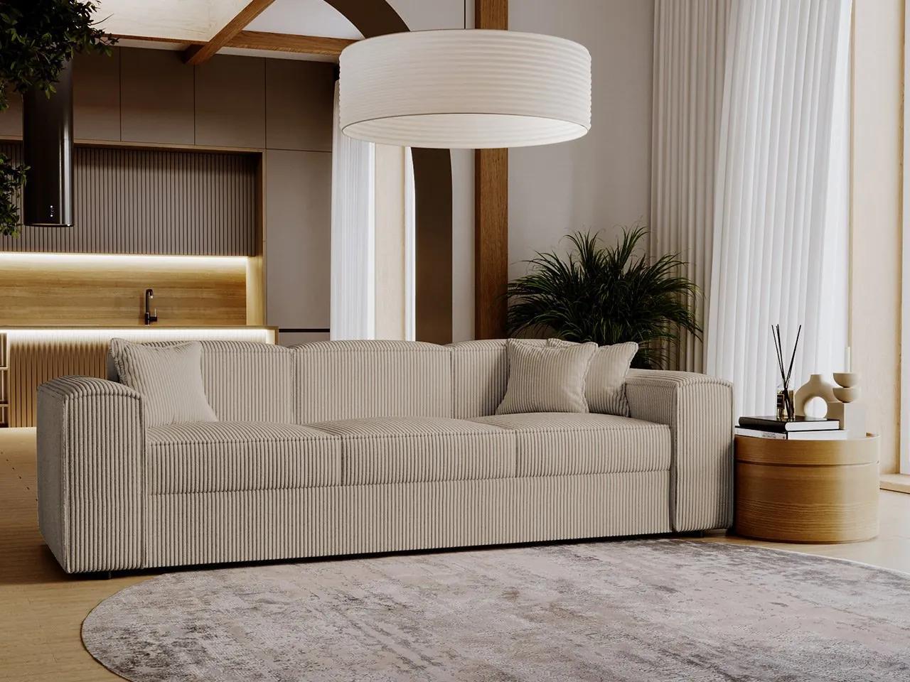Čaká na vás nový rozmer každodennej relaxácie. Pohovka Sokoz s funkciou spania je štýlový model, ktorý dokonale zapadne do priestoru vašej obývačky. Tento priestranný model je rozkladací a jeho premenu na pohodlné lôžko uľahčuje stroj typu Dolphin.Dodáva sa aj s vankúšmi, ktoré poskytujú pohodlnú oporu pri sledovaní televízie alebo čítaní knihy. Ďalšou výhodou pohovky je, že ide o voľne stojaci variant, takže si môžete vytvoriť rôzne zaujímavé zostavy. Solídne spracovanie, krásna manšestrová látka a nadčasový dizajn určite potešia každého používateľa.Rozmery:dĺžka: 252 cm,šírka: 88 cm,výška: 79 cm,plocha na spanie: rozmery: 137 x 192 cm,Prevedenie:Rám: borovicové drevo + 15 mm hrubá drevotrieska,sedadlo: 12 cm hrubá pena T28 + vlnitá pružina typu A,operadlo: 6 cm hrubá pena T23,pohovka je rozkladacia,automatická rozkladacia jednotka typu delfín,funkcia spania,bez nádoby na lôžkoviny,nohy: čierne klzáky,čalúnené operadlo napevno,vankúše vyplnené silikónovými guľôčkami,vankúše nie sú na zips,vankúše sú súčasťou balenia,pohovka je voľne stojaca (operadlo čalúnené látkou)Záruka: 24 mesiacov