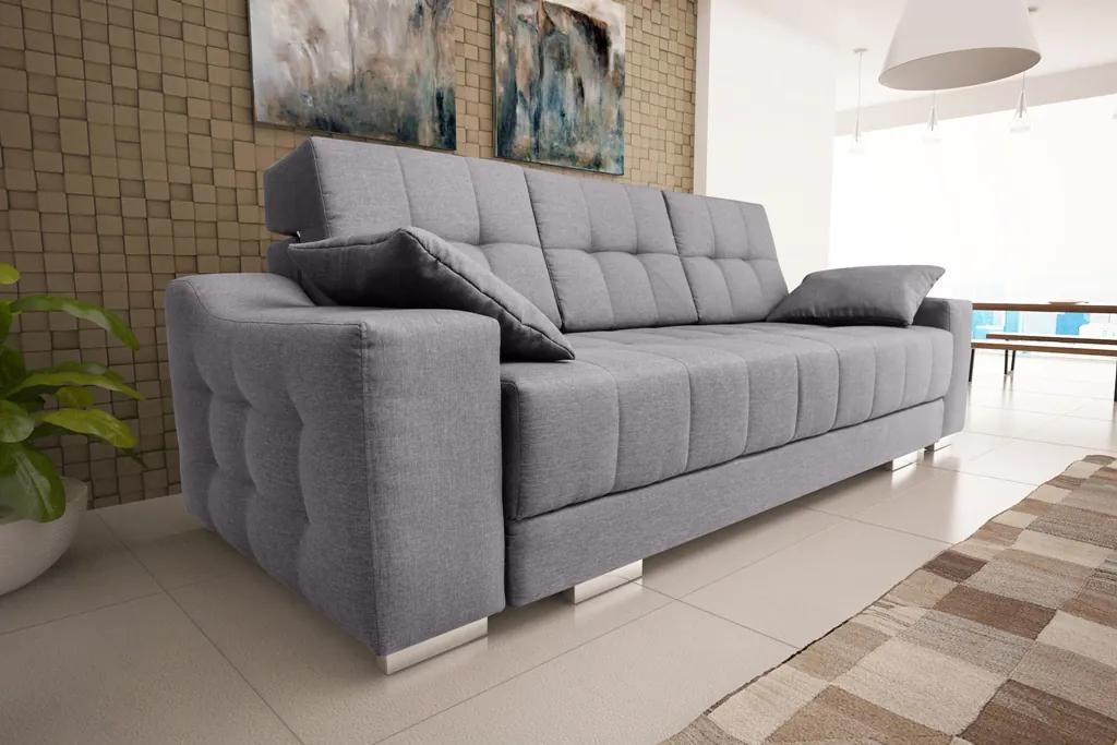 Pohovka trojsedačka Cruz (svetlosivá) s výškou 94 cm a hĺbkou 101 cm je elegantným kusom nábytku ladeným do retro štýlu. Okrem toho, že poskytuje pohodlné sedenie, má aj úložný priestor a možnosť rozloženia na príležitostné spanie. Je vhodná nielen do obývacej izby, ale aj do kancelárie. Tkanina, ktorá bola použitá na poťah, je Sawana 21 – jemná, príjemná na dotyk, s textúrou pletenia a odolná voči svetlu. Test oderovzdornosti Martindale dosahuje hodnotu 80 000 oderov. Konštrukcia je z dreva a drevotriesky, pružiny sú falisté a výplň tvorí pena T-30. Nožičky sú plastové s chrómovou farbou a výška sedu je 44 cm. Rozkladací mechanizmus je automat a plocha na spanie má rozmery 198 x 147 cm. Pohovka má aj čalúnenú zadnú časť. Pri čistení a údržbe tkaniny sa odporúča použiť špeciálne prostriedky na čalúnený nábytok a nepoužívať bieliace prostriedky. Pohovka je dostupná v rôznych farebných variantoch a je balená v dvoch balíkoch s rôznymi rozmermi.