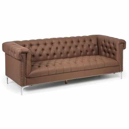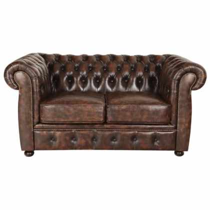 Pohovka dvojmiestna Chesterfield Tiffy z pravej hovädzej kože Brown Brown