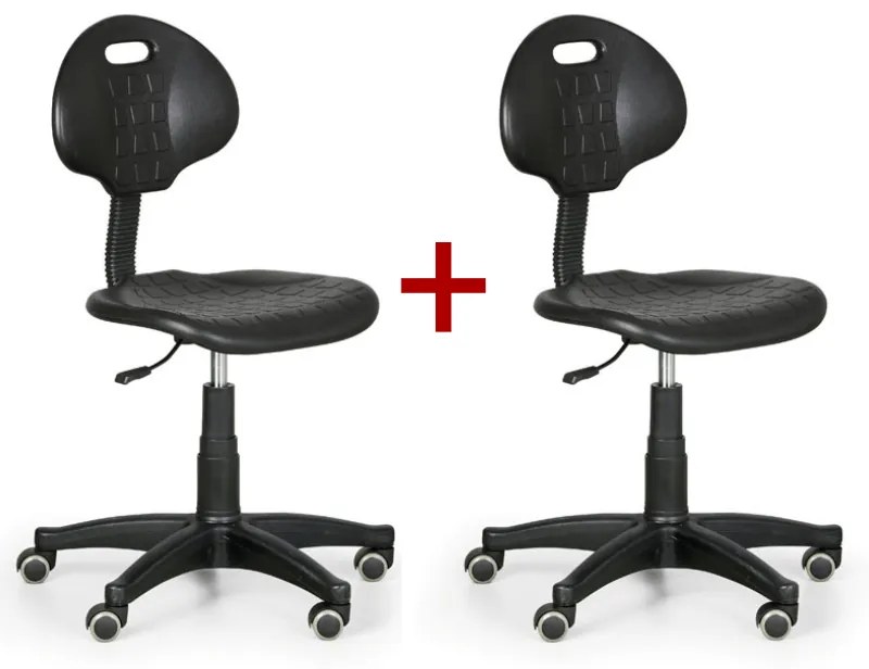 · sedadlo a operadlo z netoxického mäkčeného polyuretánu (PUR) je možné jednoducho udržovať bežnými dezinfekčnými a čistiacimi prostriedkami · operadlo pohyblivé podľa uhlu chrbta sediaceho · operadlo staviteľné v pozdĺžnej osi (skracuje a predlžuje hĺbku sedenia) · plynulé nastavenie výšky plynovým piestom · zosilnená päťramenná báza z tvrdeného plastu ABS s priemerom 640 mm · kolieska pre tvrdé podlahy · nosnosť do 130 kg