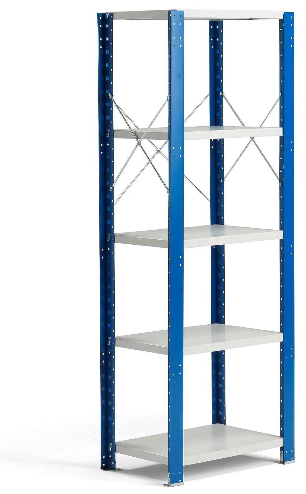Regálový systém, ktorý umožňuje otvorené alebo skryté skladovanie. Regál je vybavený nastaviteľnými policami, zadnou priečnou výstuhou a otvorenými bočnými stranami, ktoré majú tiež priečne výstuhy. MIX je univerzálny a veľmi prispôsobivý regálový systém s viacerými možnosťami. Môžete si ho zostaviť podľa svojich potrieb a vytvoriť otvorené, skryté alebo kombinované úložné priestory. Stabilná základná sekcia slúži ako základ pre váš regálový systém. Maximalizujte svoj úložný priestor a podľa potreby rozšírte policový systém pomocou jednej alebo viacerých prídavných sekcií. Môžete ho doplniť o ďalšie police, dvere, zásuvky a iné užitočné príslušenstvo na optimalizáciu úložného priestoru. Príslušenstvo sa dá ľahko doplniť a presúvať. Všetko príslušenstvo sa predáva samostatne. Základná sekcia je vyrobená z práškovo lakovaného kovu. Vďaka úprave práškovým lakom je povrch odolný proti poškriabaniu a inému poškodeniu, takže regál je vhodný do náročných podmienok. Police môžete namontovať podľa potreby. Veľmi ľahko ich môžete posúvať nahor alebo nadol s odstupmi 50 mm. Stačí ich zavesiť do požadovanej výšky – žiadne náradie nie je potrebné. Každá polica má maximálnu nosnosť 150 kg pri rovnomerne rozloženej záťaži. Základná sekcia má zadnú krížovú výstuž a bočné krížové výstuže pre vyššiu stabilitu. Každá bočná stojka má pätku, cez ktorú možno regál ukotviť do podlahy.