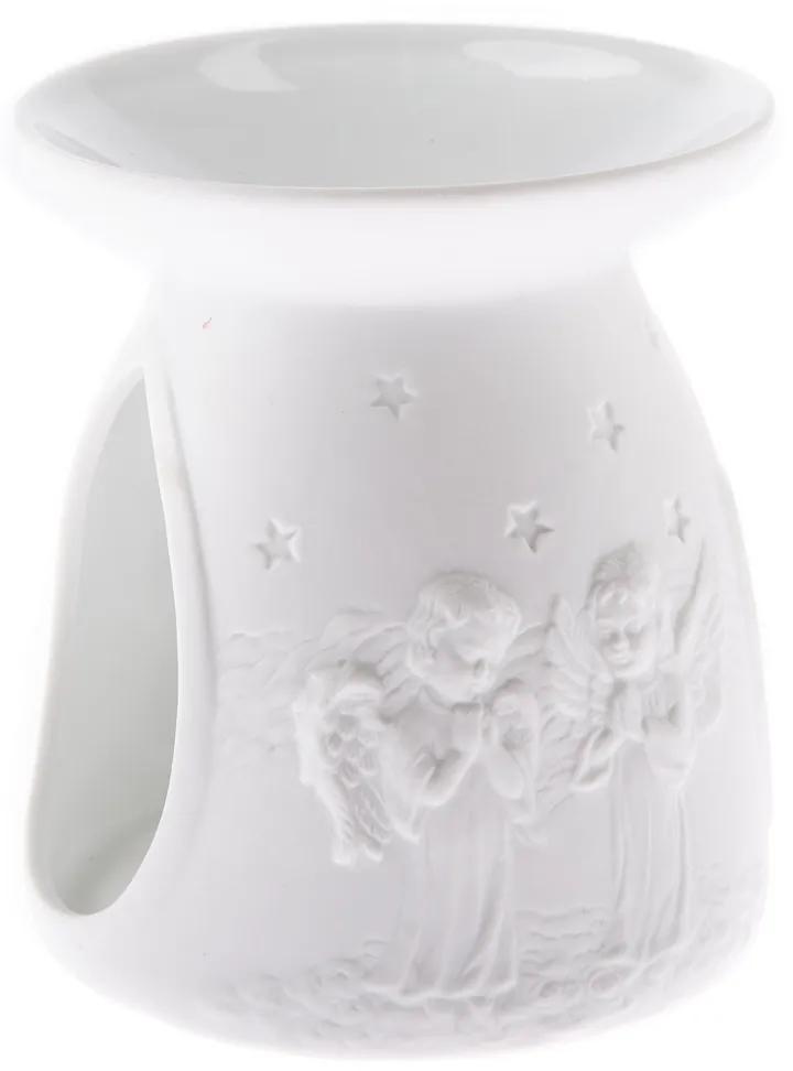 Krásna arómalampa zdobená dvoma anjelikmi sa stane pekným doplnkom vašej spálne alebo obývacej izby. Stačí pridať vodu a pár kvapiek vonného oleja či vonný vosk podľa vašich preferencií, zapáliť čajovú sviečku a môžete si užiť svoju chvíľku odpočinku pod dekou a s hrnčekom lahodného čaju.
