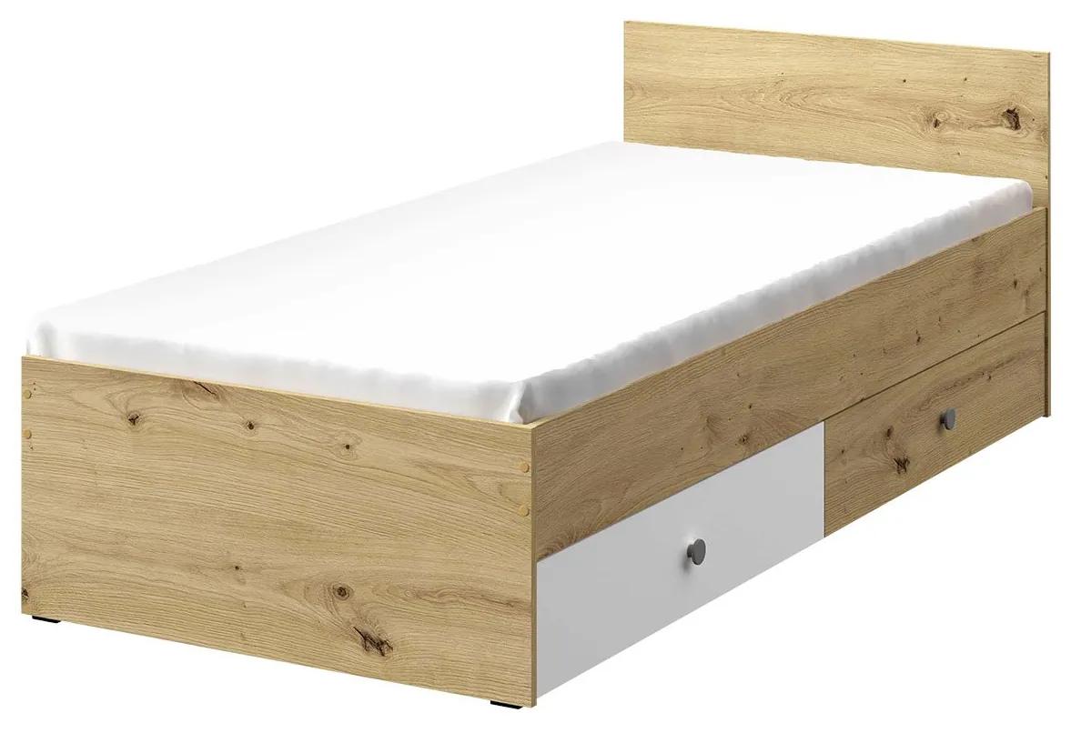 Mládežnícka posteľ Wurak WK14 je univerzálny model, ktorý si nájde svoje miesto v chlapčenskej aj dievčenskej izbe. Je vyrobená z odolných a pevných materiálov, zaručujúcich kvalitný odpočinok a ničím nerušený spánok.Posteľ Wurak je vybavená priečkovým rámom a priestrannými kontajnermi na lôžkoviny vo forme zásuviek.Nábytok je dostupný v univerzálnom rozmere s plochou na spanie 90×200 cm, čo zaisťuje pohodlný spánok jednej osoby.Rozmery:dĺžka: 204 cm,šírka: 94 cmvýška: 72 cm,plocha na spanie: 90 x 200 cmRozmery úložného priestoru (jednej zásuvky):dĺžka: 93 cmšírka: 58 cmvýška: 15 cmPrevedenie:16 mm hrubá laminovaná doska,0,5 mm ABS ráfik,držadlá: plastovéúložný priestor na posteľnú bielizeň vo forme dvoch zásuviek,klzné ložiská v zásuvkách, plné vysunutie,nohy: čierne,rám priečky (lamely z preglejky),matrac (90 x 200 cm) nie je zahrnutý v cene postele – môžete si ho objednaťZáruka: 24 mesiacov