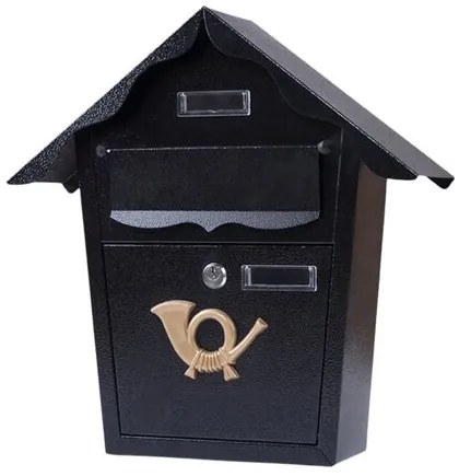 Štýlová poštová schránka z kvalitného pozinkovaného plechu odolná voči poveternostným vplyvom a UV žiareniu. Vzhľad špicatej striešky, vlnitého zdobenia a znak zlatého poštového rohu dodáva schránke na tradičnosti. Ide o schránku, ktorá je zároveň doplnkom, ktorý sa neprehliadne. Na prednej strane je zároveň dobre viditeľné okienko s menovkou. Súčasťou balenia sú dva kľúče.
