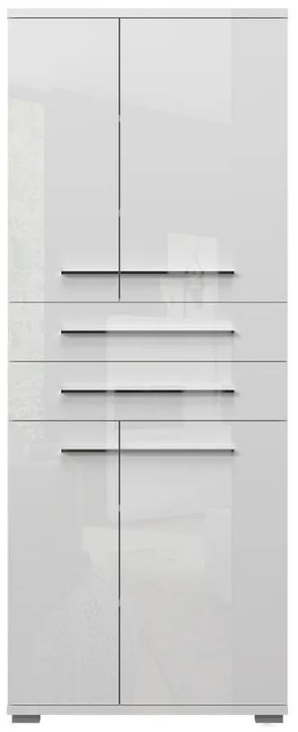 Všetky viditeľné strany skrine sú potiahnuté vysoko lesklým UV lakom, ktorý je štyrikrát odolnejší voči fyzickému poškodeniu v porovnaní so štandardným lakom. Oceníte aj pánty soft-close, ktoré zaisťujú tiché zatváranie dvierok a zásuviek, vysoko kvalitné kovanie slúžiace k pevnosti výrobku a nastaviteľné nôžky pre prípadné vyrovnanie nerovnosti na podlahe.