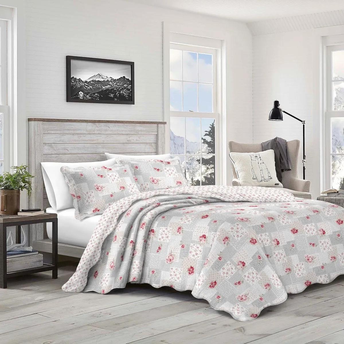 Šarmantný vzhľad a jednoducho rýchlu zmenu v každej izbe či spálni vám prinesie tento kvalitný prehoz a zároveň perfektne ochráni vaše obliečky pred vyblednutím či ušpinením. Navyše bude vaša posteľ vždy rýchlo ustlaná. Vrchnú stranu zdobí romantický patchworkový vzor s ružami, spodnú stranu zdobia drobné ružičky. Súčasťou balenia je obliečka na vankúšik s rovnakým vzorom.Sada obsahuje: