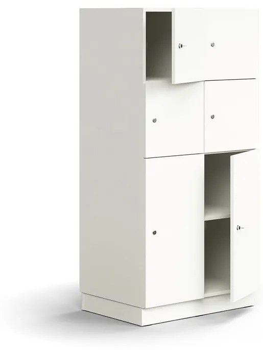 Priestranná amoderná úložná skrinka navrhnutá v spoločnosti AJProdukty. Možno ju skombinovať sostatnými výrobkami z nábytkovej rady QBUS, aby ste si vytvorili zosúladené úložné riešenie. Skrinka má napríklad šesť samostatných uzamykateľných priehradiek na osobné veci. Flexibilná nábytková rada QBUS umožňuje jednoducho vytvoriť organizované pracovisko. Táto praktická aextra hlboká úložná skrinka pozostáva zo šiestich samostatných uzamykateľných priehradiek. Je rozdelená na dve sekcie, pričom každá znich má tri priehradky. Každá sekcia má dve menšie a jednu väčšiu priehradku. Skvele sa hodí na odkladanie osobných vecí, ako sú cestovné tašky, športové tašky alebo cyklistické prilby. Je to ideálne riešenie do kancelárií, šatní ana recepcie, teda všade tam, kde je potrebný uzamykateľný úložný priestor na skrytie vecí pred očami iných. Je vyrobená z laminátu, odolného a ľahko udržiavateľného materiálu. Laminát je kdispozícii vo viacerých farbách. Základný rám a zámky na skrinku sú súčasťou balenia. Potrebujete ešte viac úložného priestoru? Nábytok z rady QBUS je vyrobený tak, aby jednotlivé kusy spolu ladili, pričom vďaka modulárnej koncepcii môžete ľahko pridať ďalší úložný priestor podľa potreby. To všetko vám pomôže zefektívniť pracovný deň.