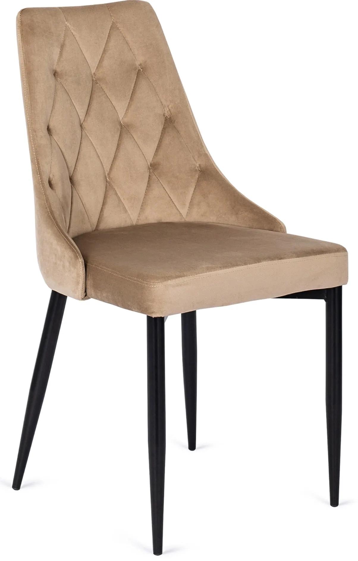 Stolička je vyrobená z najkvalitnejších materiálov. Sedák a operadlo sú potiahnuté zamatovou látkou. Stolička má pevné kovové nohy s práškovým nástrekom v čiernej farbe, ktoré dodajú jedinečný efekt v každom interiéri. Nohy majú ochranu proti poškodeniu podláh.