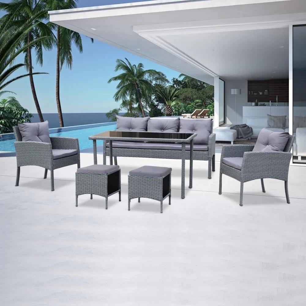Ratanová záhradná súprava vrátane čalúnenia Santorini – Sivá