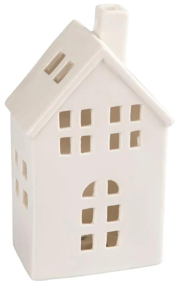 Dekorácia v tvare domčeka na čajovú sviečku.Prevedenie v bielej farbe.Materiál: porcelán.