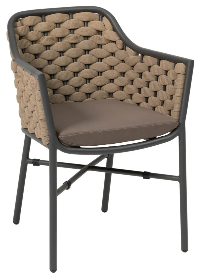 Záhradná jedálenská stolička z kolekcie Rio je prispôsobená dlhému sedeniu na terase.