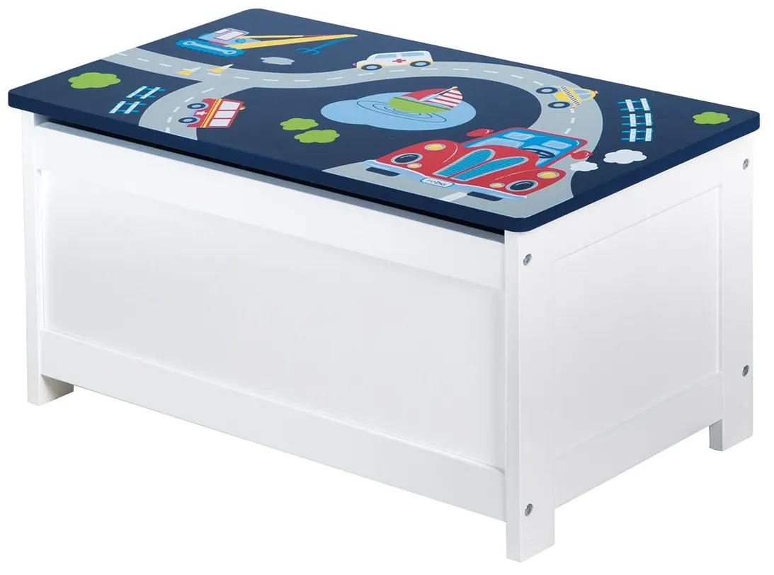 Truhlica na hračky z lakovanej a potlačenej MDF dosky je ideálne prispôsobená potrebám detí na sedenie Multifunkčné využitie ako lavica a úložný box Pohodlné sedenie už od útleho veku, pretože výška sedadla je 30 cm Úložný priestor na všetky druhy hračiek Dievčatá si zamilujú truhlicu s rozprávkovou potlačou a chlapci tú s vozidlami Vhodné pre deti od 2 do 10 rokov Rozmery cca 60 x 30 x 32 cm (Š x V x H) Hmotnosť cca 6,0 kg