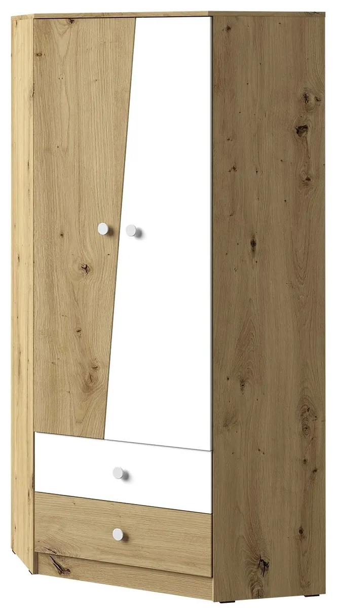 Priestranný interiér rohovej šatníkovej skrine Wurak so zásuvkami poskytuje dostatok úložného priestoru. Vstavané police v kombinácii s priestorom na zavesenie oblečenia na vešiaky poskytujú optimálne podmienky pre šatník tínedžera. Z vonkajšej strany má šatníková skriňa aj ľahko prístupné zásuvky, do ktorých môže mladý študent uložiť často používané doplnky.Svieže farebné prevedenie nábytku dobre ladí so zariadením izby tínedžera. Tým, že poskytuje neutrálne pozadie, umožňuje časté zmeny usporiadania.Rozmery:šírka: 87 cm,výška: 191 cm,hĺbka: 87 cmPrevedenie:16 mm hrubá laminovaná doska,0,5 mm ABS ráfik,zásuvky: guličkové vedenie, plné vysunutie,pánty: GTV,držadlá: plastové,tyč a police vo vnútri,nohy: čierne,montážne prvky na stenu (vo vysokých prvkoch dodatočná ochrana proti prevráteniu)Záruka: 24 mesiacov