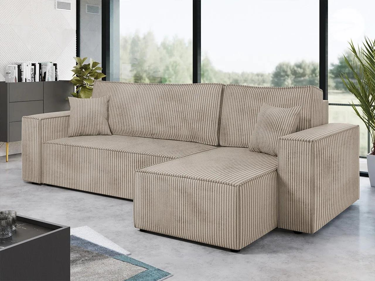 Rozkladacia pohovka Kasjusz s funkciou spania je model s mimoriadnou funkčnosťou a jedinečným dizajnom. Jej jedinečnou vlastnosťou je, že sa dá rozložiť, čo z nej robí ideálne miesto na odpočinok a spánok. Poteší aj svojím spracovaním. Rebrovaná látka jej dodáva elegantný charakter a zaujímavý vzhľad.To však nie je všetko! Stačí len chvíľka, aby ste túto rohovú pohovku premenili na priestrannú posteľ, ktorá vám poskytne miesto na regeneračný spánok. Takto si môžete užívať pohodlie nielen počas každodenných chvíľ oddychu, ale aj počas dlhých a pohodových nocí. Tento variant bol vybavený kontajnerom na lôžkoviny, ktorý vám umožní uložiť prikrývky, vankúše a ďalšie potrebné veci. Okrem toho bolo jeho operadlo navrhnuté vo forme pohyblivých vankúšov, ktoré si môžete ľubovoľne nastaviť podľa svojich preferencií.Sedačka je nielen funkčná, ale aj krásny dekoratívny prvok, ktorý vnesie do vášho interiéru moderný a štýlový nádych. Jej voľne stojaca konštrukcia vám umožní ľubovoľne ju umiestniť kdekoľvek v miestnosti, čím získate úplnú voľnosť pri jej usporiadaní.Rozmery:dĺžka: 244 cm,šírka: 145 cm,výška: 83 cm,plocha na spanie: 200 x 125 cmRozmery úložného priestoru:dĺžka: 128 cm,šírka: 61 cmvýška: 25 cmRohová strana: univerzálna (zákazník si vyberie stranu počas montáže)Prevedenie:rám: drevené lamely + 16 mm hrubá drevotrieska,pena T30 o hrúbke 9 cm + vlnitá pružina typu Arozkladacia rohová pohovka,má funkciu spania,úložný priestorokrúhle plastové nohy v čiernej farbe,operadlo vo forme pohyblivých vankúšovvankúše na zips, vyplnené jutovou penou,samostatne stojaca rohová pohovka (zadná časť čalúnená látkou)Záruka: 24 mesiacov