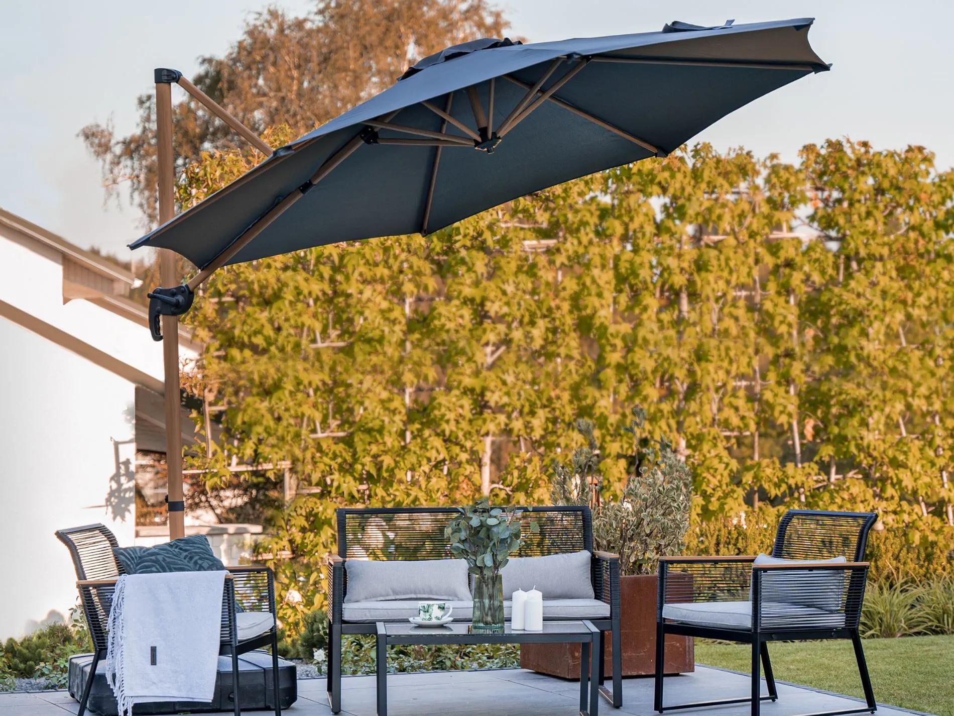Decentný slnečník Roma v peknom kontraste antracitovej a hnedej farby.