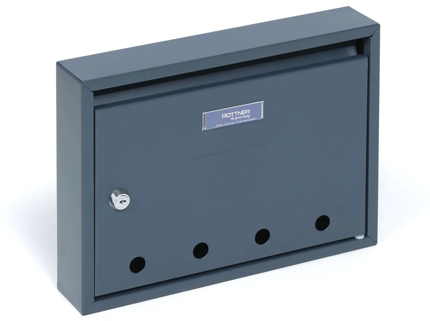 · poštová schránka z pozinkovanej ocele · cylindrický zámok a 2 ks kľúčov · miesto na menovku + 4 otvory vo dverách · možnosť montáže do zostáv · predný vhod, predný výber · zadná strana disponuje otvormi na upevnenie (montážny materiál súčasťou balenia) · váha: 1,4 kg