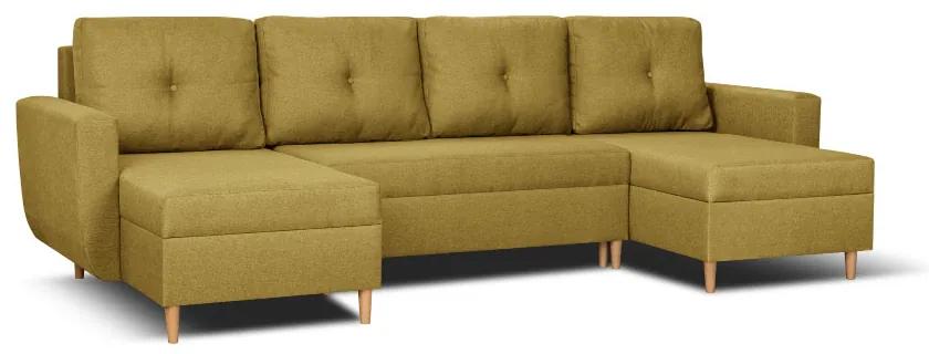 Rozkladacia rohová sedacia súprava DORIS MAX Horčicová Rohová sedačka DORIS s funkciou spania a úložným priestorom na posteľnú súpravu.Moderná rohová sedačka vo veľafarebnom prevedení bude peknou ozdobou každej obývačky. Nábytok uchváti štýlovou, pevnou konštrukciou a kvalitou prevedenia. Každému interiéru dodá moderný vzhľad. Rohová sedačka je veľmi praktická, má funkciu spania a vaši hostia sa budú prebúdzať oddýchnutí a uvoľnení. Pružiny Bonell zaisťujú užívateľovi dokonalé pohodlie. Popis: pružina Bonell opierky na ruky funkcia spanie 3 x úložný prostor na ložní soupravu drevené nožky voľne stojaci nábytok – čalúnený chrbát vysoko kvalitná PUR pena T30 valčekový systém rozkladania konštrukcia z dreva a drevotriesky záruka 24 měsíců Látka MALMO – jemná na dotyk, hladká, nepatrne pretkaná jemnou, mierne lesklou väzbou; čalúnnická látka odolná voči oteru, veľmi odolná, pevná, súčasne veľmi mäkká a príjemná na dotyk. Látka Malmo dosiahla v teste na oter výsledku 55 000 cyklov, čo znamená vysokú odolnosť proti oteru pri sedení. Látka Malmo sa tiež vyznačuje odolnosťou voči žmolkovaniu a vyblednutiu pri umelom osvetlení. Nábytok s týmto čalúnnickými materiálom si tak zachováva krásny vzhľad po veľmi dlhú dobu. Rozmery: Šírka: 294 cm Výška: 86cm Hĺbka: 151 cm Povrch spacej plochy: 270/151 cm K dostaniu v mnohých farbách