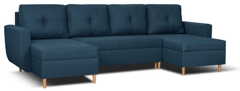 Rozkladacia rohová sedacia súprava DORIS MAX Tmavomodrá Rohová sedačka DORIS s funkciou spania a úložným priestorom na posteľnú súpravu.Moderná rohová sedačka vo veľafarebnom prevedení bude peknou ozdobou každej obývačky. Nábytok uchváti štýlovou, pevnou konštrukciou a kvalitou prevedenia. Každému interiéru dodá moderný vzhľad. Rohová sedačka je veľmi praktická, má funkciu spania a vaši hostia sa budú prebúdzať oddýchnutí a uvoľnení. Pružiny Bonell zaisťujú užívateľovi dokonalé pohodlie. Popis: pružina Bonell opierky na ruky funkcia spanie 3 x úložný prostor na ložní soupravu strieborné nožky obojstranné vankúše na zips (prateľné) voľne stojaci nábytok – čalúnený chrbát vysoko kvalitná PUR pena T30 valčekový systém rozkladania konštrukcia z dreva a drevotriesky záruka 24 měsíců Látka MALMO – jemná na dotyk, hladká, nepatrne pretkaná jemnou, mierne lesklou väzbou; čalúnnická látka odolná voči oteru, veľmi odolná, pevná, súčasne veľmi mäkká a príjemná na dotyk. Látka Malmo dosiahla v teste na oter výsledku 55 000 cyklov, čo znamená vysokú odolnosť proti oteru pri sedení. Látka Malmo sa tiež vyznačuje odolnosťou voči žmolkovaniu a vyblednutiu pri umelom osvetlení. Nábytok s týmto čalúnnickými materiálom si tak zachováva krásny vzhľad po veľmi dlhú dobu. Rozmery: Šírka: 294 cm Výška: 86cm Hĺbka: 151 cm Povrch spacej plochy: 270/151 cm K dostaniu v mnohých farbách