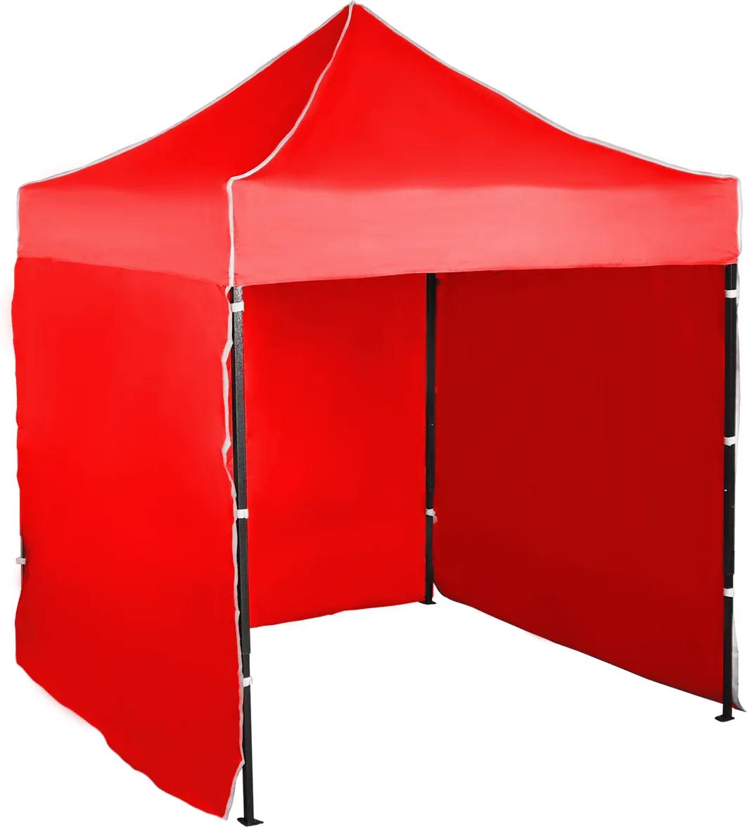 Rýchlorozkladací nožnicový stan 2x2m – oceľový, Červená, 3 bočné plachty