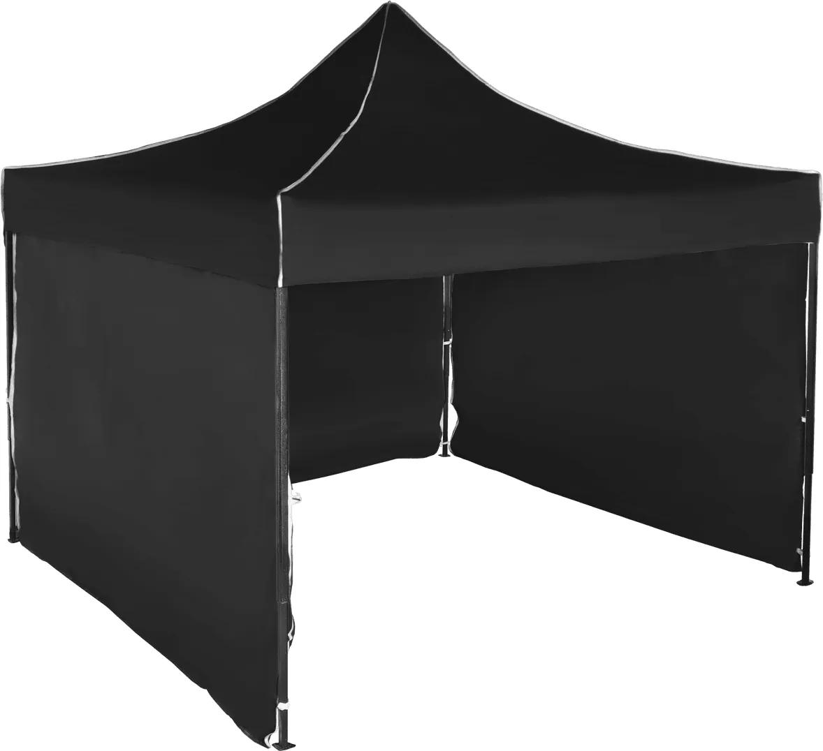 Rýchlorozkladací nožnicový stan 3x3m – oceľový, Čierna, 3 bočné plachty
