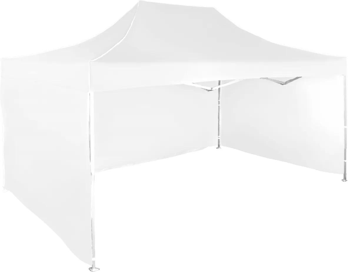 Rýchlorozkladací nožnicový stan 3×4,5m – hliníkový, Biela, 3 bočné plachty
