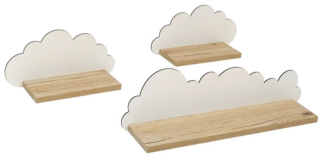 Sada 3 poličiek v tvare obláčika, ktoré oživia stenu každej detskej izbičky. Jemné prevedenie v neutrálnych farbách dodá izbe moderný a škandinávsky vzhľad. Knižka, fotka v rámiku či iné drobnosti nájdu svoje miesto na jednom z troch obláčikov a izbička vašich detí sa stane krajšou a útulnejšou.