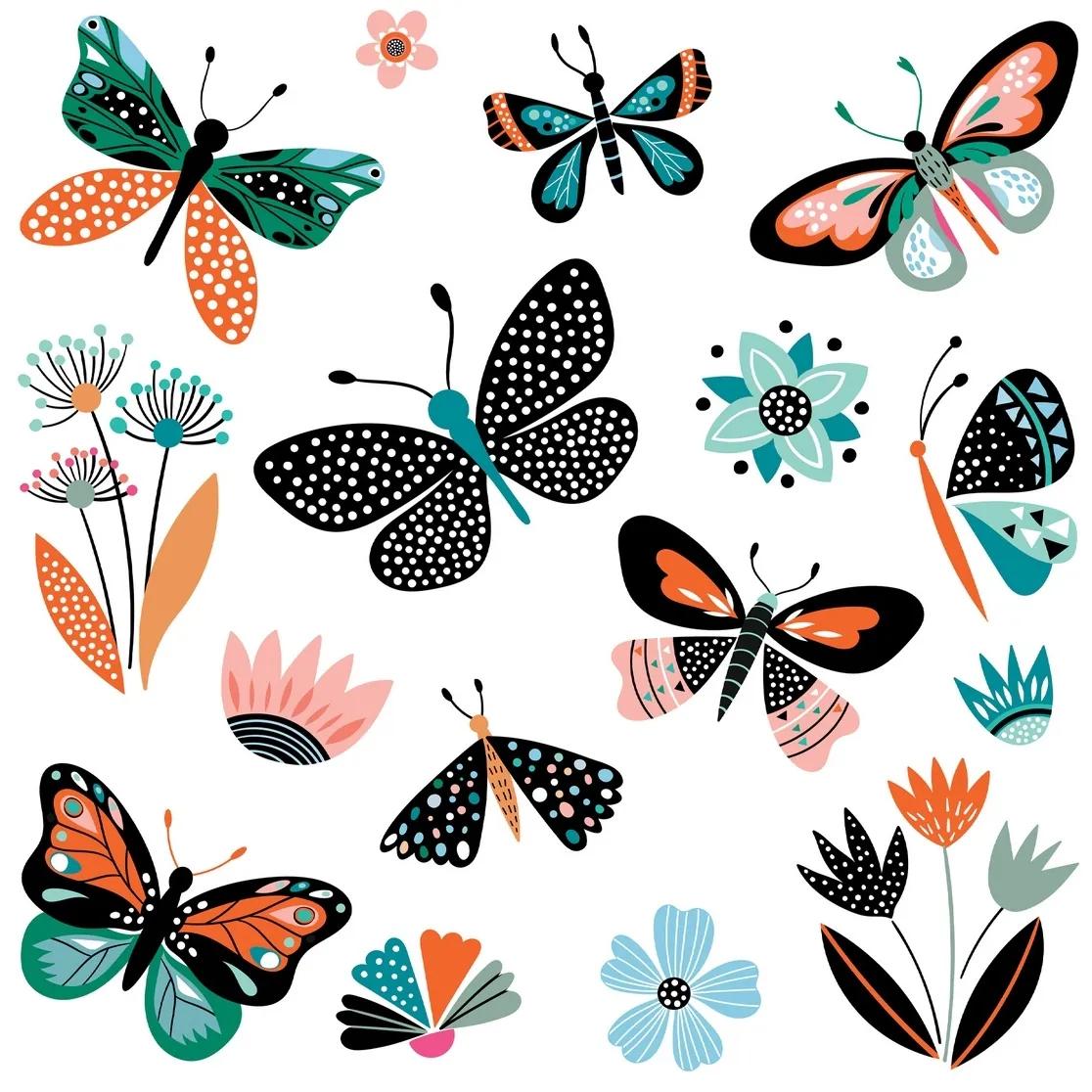 Skvelá dekorácia plná farieb s motívom motýľov a kvetov, ozvláštni každý priestor. Samolepka sa vyznačuje vysokou kvalitou tlačeného obrazu. Je ideálnA na výzdobu stien, nebledne. Rýchlo a ľahko sa aplikuje, je ekologická, použitá fólia je bez ftalátov.