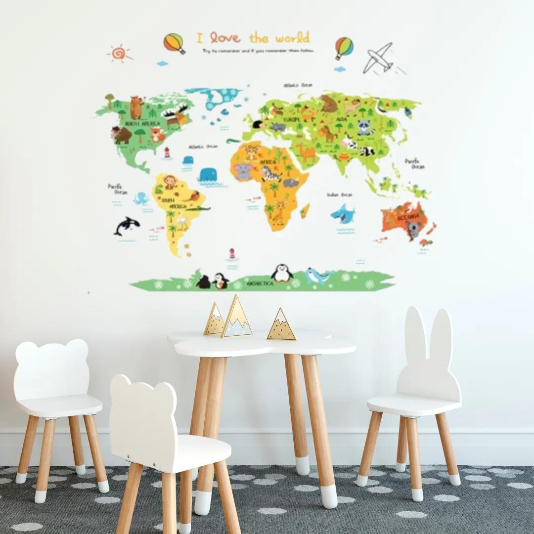 Kontinenty a niektoré zvieratká sa lepia samostatne, takže nalepenie je jednoduché a zvládne ho naozaj každý.