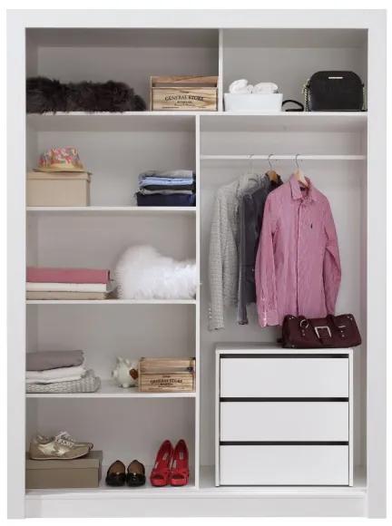 Zháňate štýlovú a elegantnú skriňu, do ktorej sa zmestí všetko vaše obľúbené a ťažko nazbierané oblečenie? Práve ste takú našli. Súčasťou šatníkovej skrine Angelika III je šatníková tyč a mnoho políc. Šatníková skriňa Angelika III je vybavená posuvnými dverami, ktoré vám ušetrí niekoľko metrov štvorcových miesta. Posuvné dvere sú tiež skvelým riešením do menších priestorov, kde by ste šatníkovú skriňu s klasickými dverami otvoriť nemohli. Dôležitým prvkom skrine Angelika sú dve zrkadlá. Šatníková skriňa so zrkadlom? Dôvodov, prečo mať takú skriňu je veľa. Pri ladení oblečenia nemusíte nikam odbiehať a ušetríte tým veľa času. A práve tento čas sa ráno hodí každému z nás. Zrkadlá navyše dokažu opticky rozšíriť každý interiér. Zrkadlo ako súčasť šatníkovej skrine je tiež výhodou, ak už v miestnosti nemáte na umiestnenie samotného zrkadla priestor. Súčasťou šatníkovej skrine Angelika III je kontajner, ktorý môže slúžiť na skladovanie menších kusov oblečenia. Šatníková skriňa Angelika III sa stane nepostrádateľným pomocníkom vo vašej domácnosti. Šatníková skriňa Angelika III je vyrobená z kvalitného lamina, ktorého prednosťou je predovšetkým ľahká údržba a odolnosť proti poškodeniu, čo určite oceníte. Rozmery šatníkovej skrine Angelika III sú 160x215x60cm (š, v, h). K šatníkovej skrini Angelika je možné dokúpiť tri doplnkové police vo farbe skrine.