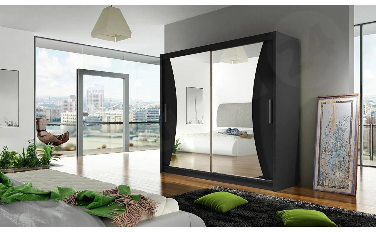 Šatníková skriňa London V so zrkadlom vyzerá moderne a štýlovo. Vnútro skrine je vybavené priestrannými a hlbokými policami, v ktorých sa určite bude nachádzať množstvo oblečenia a doplnkov. Druhá časť skrine je vybavená tyčkou pre vešiaky. Ak zavesíte svoje obľúbené oblečenie, zabránite jeho pokrčeniu. Šatník je vyrobený z vysoko kvalitných komponentov, pracuje ticho a ľahko sa zostavuje.Rozmery:šírka: 180 cm,výška: 215 cm,hĺbka: 57 cmFarby: je možné zvoliť vyššiePrevedenie:laminovaná doska s hrúbkou 16 mm,hrany zakončené ABS dýhou,systém posuvných dverí,hliníkové vodidlá Sevra typu Micra,predné zrkadlá,vybavené tyčou a priestrannými policami,RGB LED osvetlenie ako doplnková možnosť za príplatok (15 farieb + diaľkové ovládanie)Záruka: 24 mesiacov