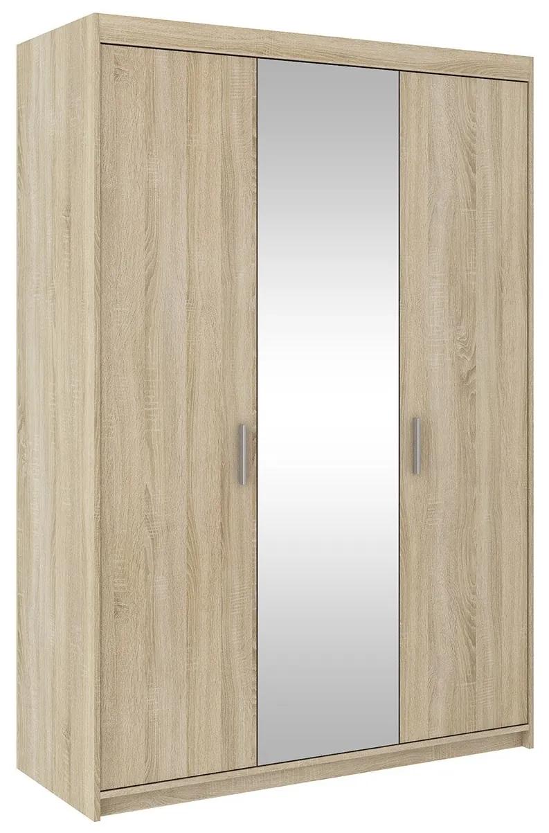 Trojdverová šatníková skriňa Melen 3D so zrkadlom je model vybavený praktickým systémom políc a vešiakovou tyčou. Časť na zavesenie oblečenia zaberá 2/3 celej skrine, čo znamená, že budete mať ľahký prístup k svojmu obľúbenému oblečeniu. Zvyšné časti šatníka môžete rozmiestniť na policiach. Šatníková skriňa je navyše k dispozícii v módnych farbách, vďaka ktorým ju ľahko zladíte s ostatným nábytkom v miestnosti. Ďalšou výhodou šatníkovej skrine je veľké zrkadlo, ktoré sa nachádza na stredových dverách. Umožní vám prezerať si vybrané výtvory, ako aj pozitívne ovplyvniť priestor a opticky ho zväčšiť.Rozmery:šírka: 133 cm,výška: 191 cm,hĺbka: 53 cmPrevedenie:Laminovaná doska 16 mm,vnútri: tyč a police,rukoväť – plast,zrkadlo na prednej strane,Záruka: 24 mesiacov