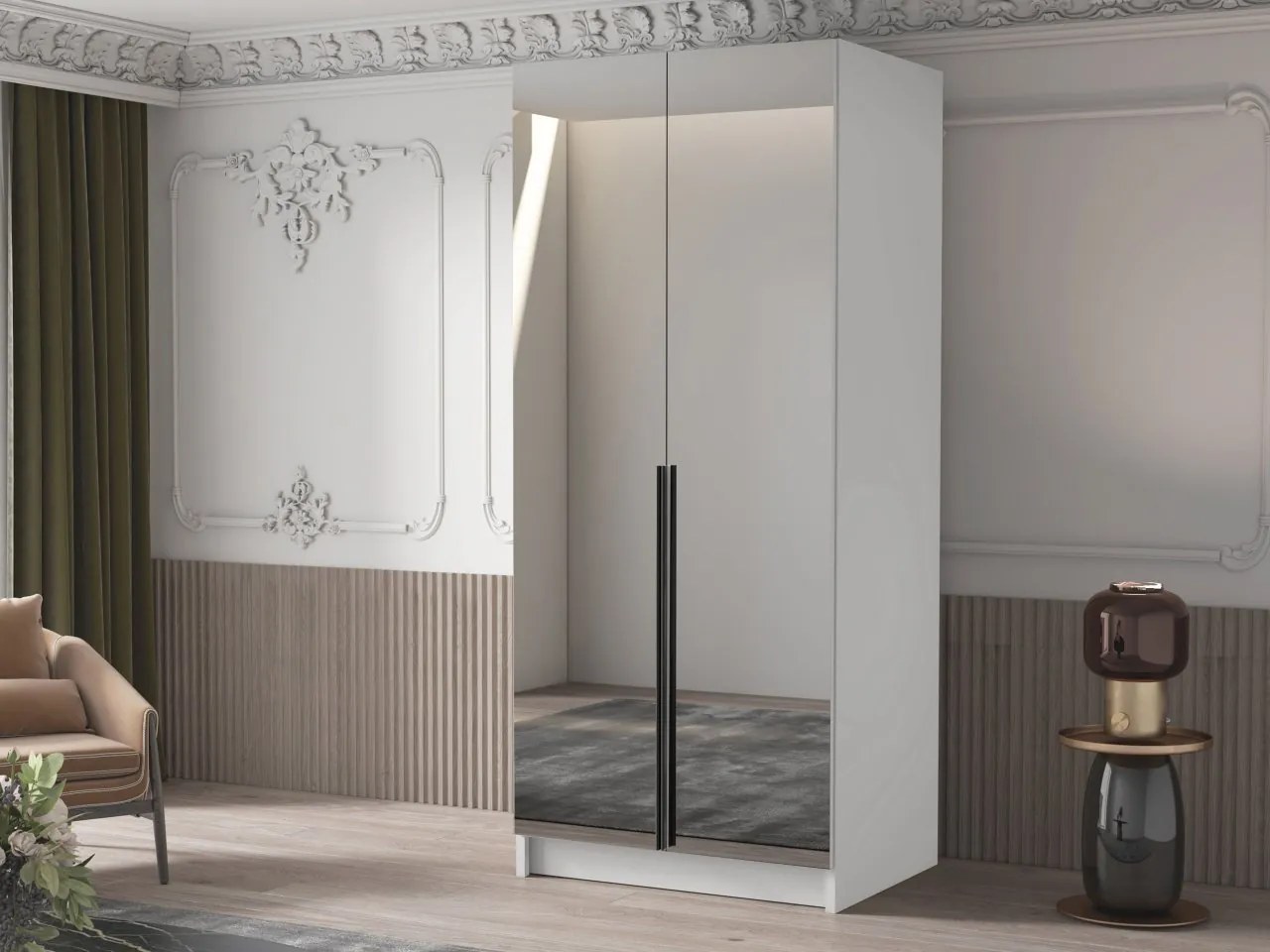 Rozmery:šírka: 100 cm,výška: 215 cm,hĺbka: 58 cmPrevedenie:laminovaná drevotrieska hrúbky 16 mm,hrany zakončené PVC dyhou,zadná stena vyrobená z drevovláknitých dosiek,kovové rukoväte,rovné pánty s tichým zatváraním,zrkadlo,vo vnútri sú police a tyč na šatyZáruka: 24 mesiacov