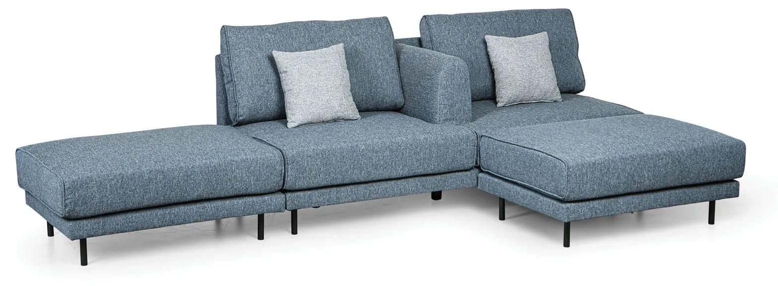 · Rozmery (V x Š x H): 690 x 2720 x 1430 mm · Samostatné rozmery jedného taburetu (V x Š x H): 690 x 900 x 660 mm · Súčasťou 2x vankúšik 300 x 300 x 140 mm a 2x oporný vankúš 800 x 420 x 200 mm · Materiál poťahu: látka · Vankúše s aretáciou suchým zipsom · Odnímateľné čalúnenie na zips · Materiál konštrukcie: Eukalyptový masív + preglejka · Materiál výplne: PU pena · Výška sedadla: 390 mm · Výška operadla: 290 mm bez oporného vankúša, 420 mm s oporným vankúšom · Nosnosť: 360 kg · Počet miest na sedenie: 3