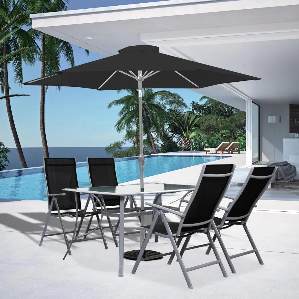 Veľký rodinný záhradný set s 4-timi polohovateľnými kreslami, stolom a veľkým polohovateľným slnečníkom