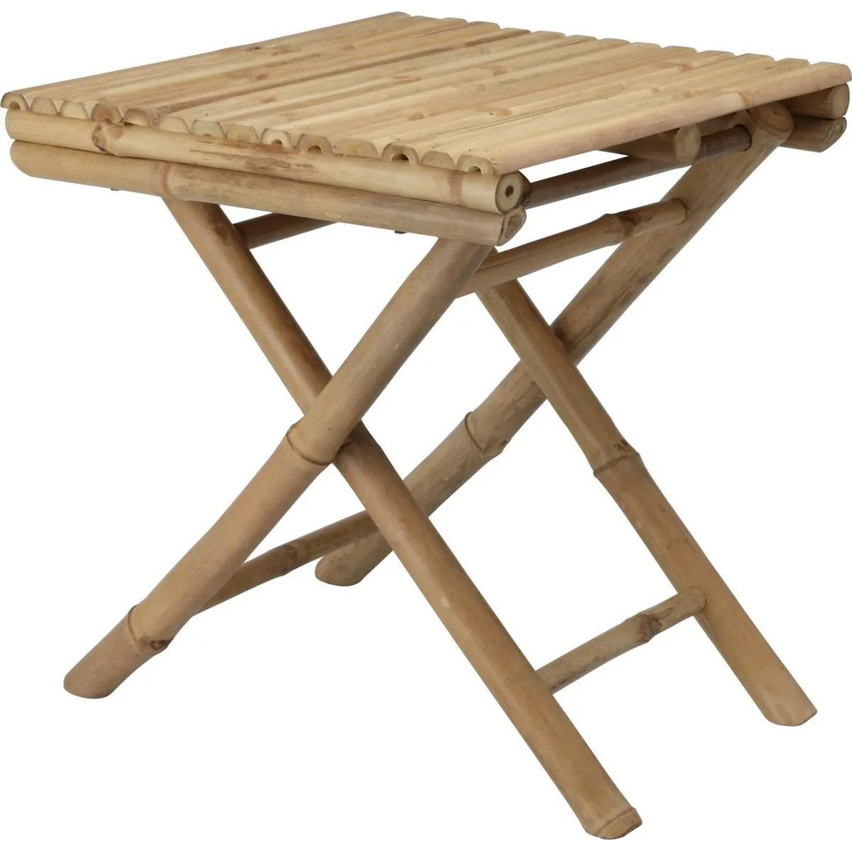 Skladací stolík s jednoduchým ale nápaditým dizajnom, ktorý vytvorí pomocou bambusových trubiek odkladací priestor do vášho interiéru či exteriéru. Vďaka svojmu prírodnému materiálu zapadne kamkoľvek, kde sa opakujú prírodné motívy a stane sa atraktívnym doplnkom. Výrobok je navyše veľmi praktický, vďaka možnosti zloženia, a tým je možné ho využiť iba v okamihu, keď je naozaj potrebné a doplniť ním váš stály nábytok. Originálny prvok, ktorý na seba rozhodne upúta pozornosť, so zbrúseným vrchným povrchom na stabilné odkladanie.