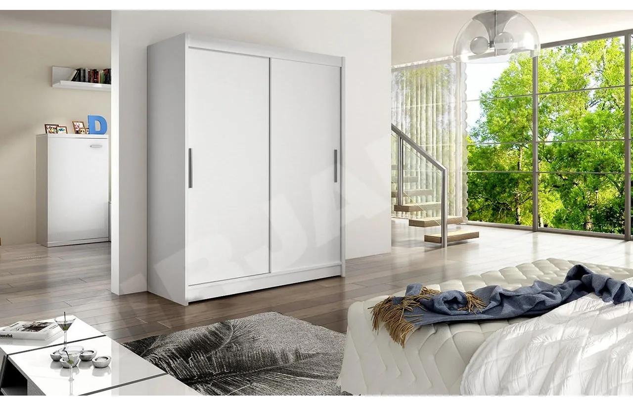 Šatníková skriňa Presto I zapadne do obývacej izby alebo spálne. Predné fronty majú ozdobné zrkadlá, ktoré vizuálne zväčšia miestnosť. Šatník je vybavený hliníkovým systémom posuvných dverí. Všetky časti oblečenia môžu byť zavesené na namontovanú tyč na vešiaky a uložené na priestranné police. Do skrine do spálne sa dajú umiestniť aj väčšie predmety, ako sú kufre alebo sezónna obuv. Nábytok bol vyrobený z laminovanej dosky.Rozmery:šírka: 150 cmvýška: 200 cmhĺbka: 58 cmFarby: možnosť výberu farieb tuPrevedenie:drevotriesková doska laminovaná 16 mm,systém posuvných dverí,vodiace lišty od firmy Sevroll, systém Micra,hliníkové lišty,osvetlenie LED RGB je možné si doobjednať za príplatokZáručná doba: 24 mesiacov