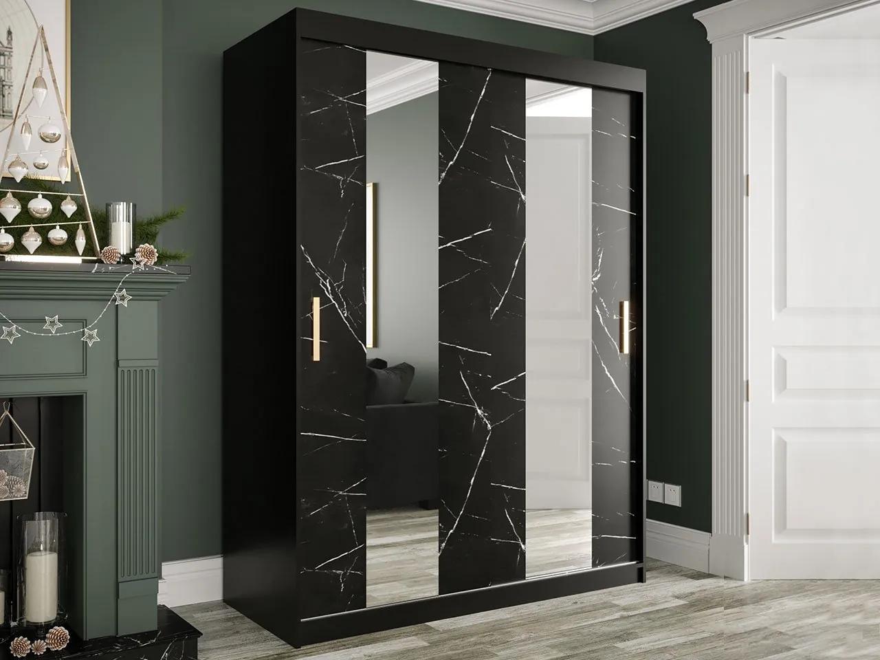 Skriňa s posuvnými dverami Nonnus 150 Pole nesmie chýbať v žiadnej obývačke. Vďaka štýlovému vzhľadu sa nábytok dokonale hodí do interiéru spálne aj predsiene . Dekoruje interiér, podporuje jeho funkčnosť a zjednodušuje uskladnenie vecí.Členovia domácnosti majú dostatok priestoru na uloženie tričiek a nohavíc. Na druhej strane plocha na vešiaky ponúka veľa miesta na bundy, kabáty a vetrovky.Vnútro skrine je možné vybaviť zásuvkami vo farbe korpusu. Osvedčia sa ako praktický úkryt spodnej bielizne, šperkov a drobných doplnkov.Rozmery:šírka: 150 cm,výška: 200 cm,hĺbka: 62 cmPrevedenie:16 mm hrubá laminovaná doska,hrany zakončené odolnou a odolnou PVC dyhou,posuvné dvere na vodidlách firmy “BIMAK”, systém “MINI”,kovové rukoväte zlatej farby,zrkadlo na prednej strane,vnútorné police a tyče na šaty,zásuvky (2ks) ako doplnková možnosť za príplatok – vo farbe korpusuZáruka: 24 mesiacov