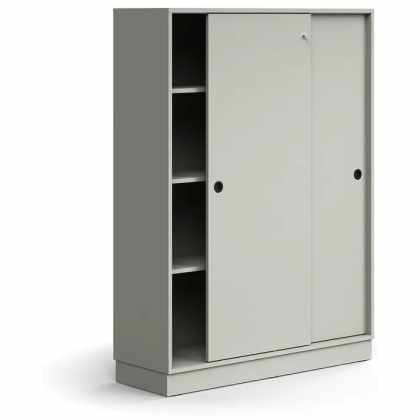 Skriňa s posuvnými dverami QBUS, 3 police, so soklom, s madlom, 1636x1200x400 mm, svetlošedá